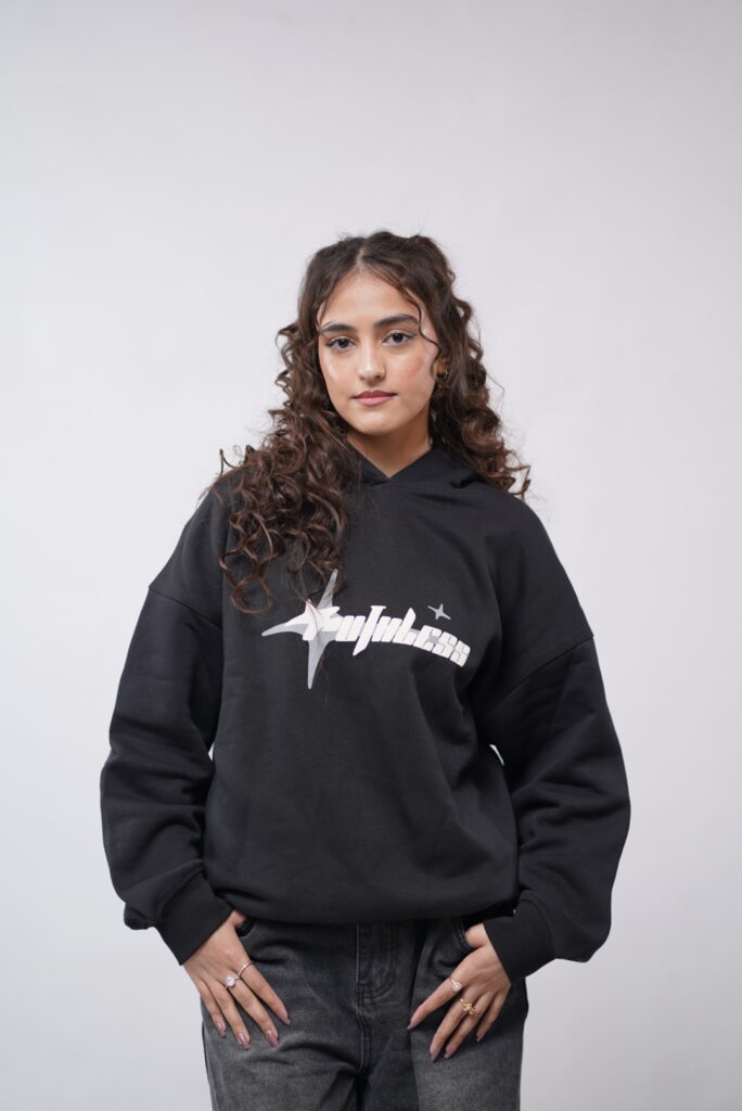 This black hoodie features our signature Cloud Fit with a relaxed, oversized silhouette crafted
